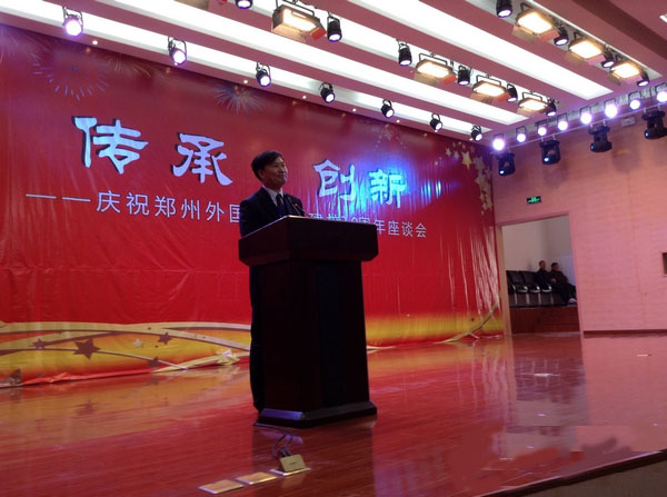 座談會現(xiàn)場,鄭州外語中學校長王中立致辭