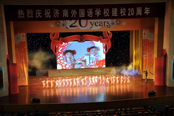 濟(jì)南外國(guó)語(yǔ)學(xué)校慶祝建校20周年文藝演出在山東會(huì)堂成功舉行。全體教職工、部分離退休老教師、校友、家長(zhǎng)以及學(xué)生代表和嘉賓2300于人,歡聚一堂,座無(wú)虛席,共同慶祝濟(jì)南外國(guó)語(yǔ)學(xué)校建校20周年。