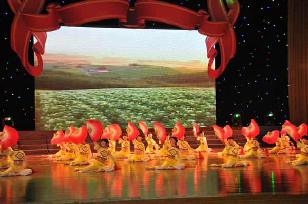 演出結(jié)束時(shí),陳東生局長(zhǎng)、王春光副局長(zhǎng)在蘇旭勇校長(zhǎng)、趙雷書記陪同下來(lái)到全體演職員中間祝賀演出成功并合影留念。