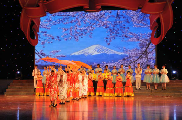 小學(xué)部英語(yǔ)劇《睡美人》片段和初中部學(xué)生用英、日、俄、德、法、西六個(gè)語(yǔ)種演出的《外語(yǔ)歌曲聯(lián)唱》,在讓觀眾陶醉于“洋腔洋調(diào)、原汁原味”的表演同時(shí),從一個(gè)側(cè)面生動(dòng)展示了我校多語(yǔ)種、聽(tīng)說(shuō)領(lǐng)先、實(shí)踐延伸的外語(yǔ)特色與優(yōu)勢(shì)。