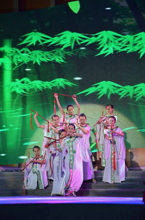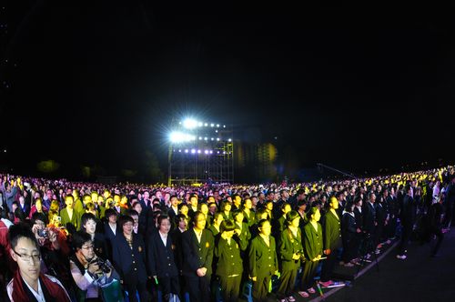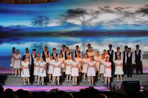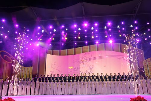 文藝晚會在全校師生合唱校歌的歌聲結(jié)束。
