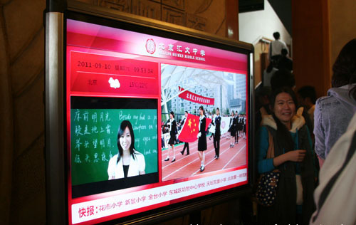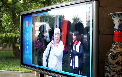 OpenShow綜合信息發(fā)布系統(tǒng)就放置在教學(xué)大廳,前廳一個,中廳一個,炫美的顯示屏上播放著校園宣傳視頻、展示著師生活動圖片和現(xiàn)場校友交流畫面,吸引了大家的注意力,很多人佇立在大屏前觀看一張張傳神的現(xiàn)場照片,幾多回憶,十分感慨。