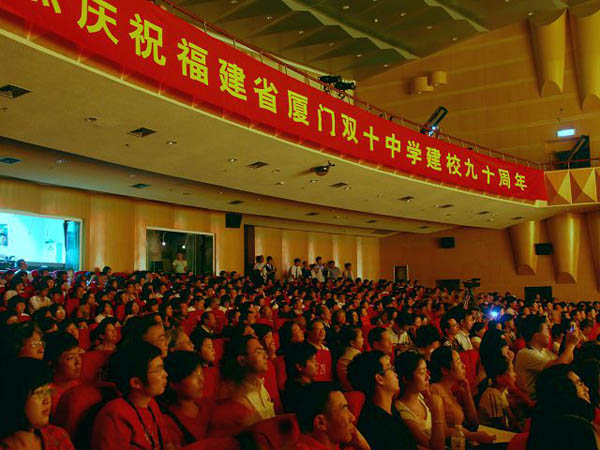 十日晚,掩映在中山公園綠樹叢中的廈門歌舞劇院高朋滿座,流光溢彩,眾多雙十校友齊聚一堂,參加“海峽兩岸雙十中學(xué)文藝晚會”,為母校九十周年華誕慶生。