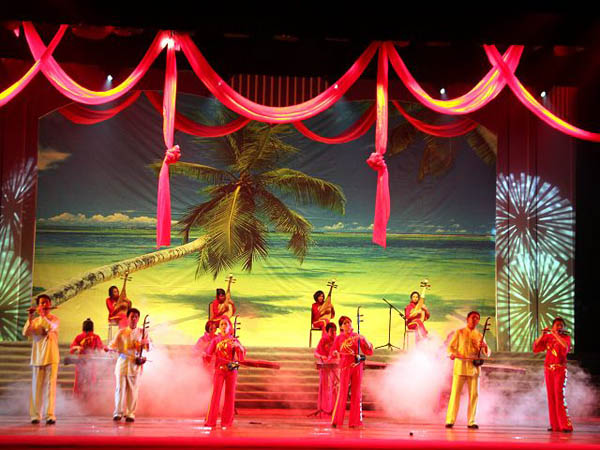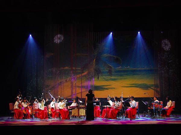 臺中雙十的管弦樂隊(duì)技藝精湛,曾在維也納金色大廳里,用音樂感染了全世界的音樂愛好者。今晚他們在這里,又為觀眾獻(xiàn)上一場精彩的演出。樂隊(duì)指揮林文也先生是這支樂隊(duì)的靈魂,他在臺上風(fēng)度翩翩,在他優(yōu)雅的指揮下,樂器也有了生命,并發(fā)出一個(gè)個(gè)優(yōu)美的音符,組成一支支有生命的樂章?!短一ǘ伞份p快優(yōu)美的旋律里,觀眾感覺自己仿佛置身于那美麗渡口,感受那無邊盎然的春意,興之所至,林先生還轉(zhuǎn)過身來,讓臺下觀眾用陣陣歡快的掌聲為這美妙樂聲增添無邊的氣氛,臺上臺下,其樂融融。而《威風(fēng)凜凜》的演奏,舒緩的樂聲帶給人的則是威嚴(yán)、力量,兩個(gè)節(jié)目,兩種風(fēng)格,讓觀眾充分領(lǐng)略了管弦音樂的魅力。